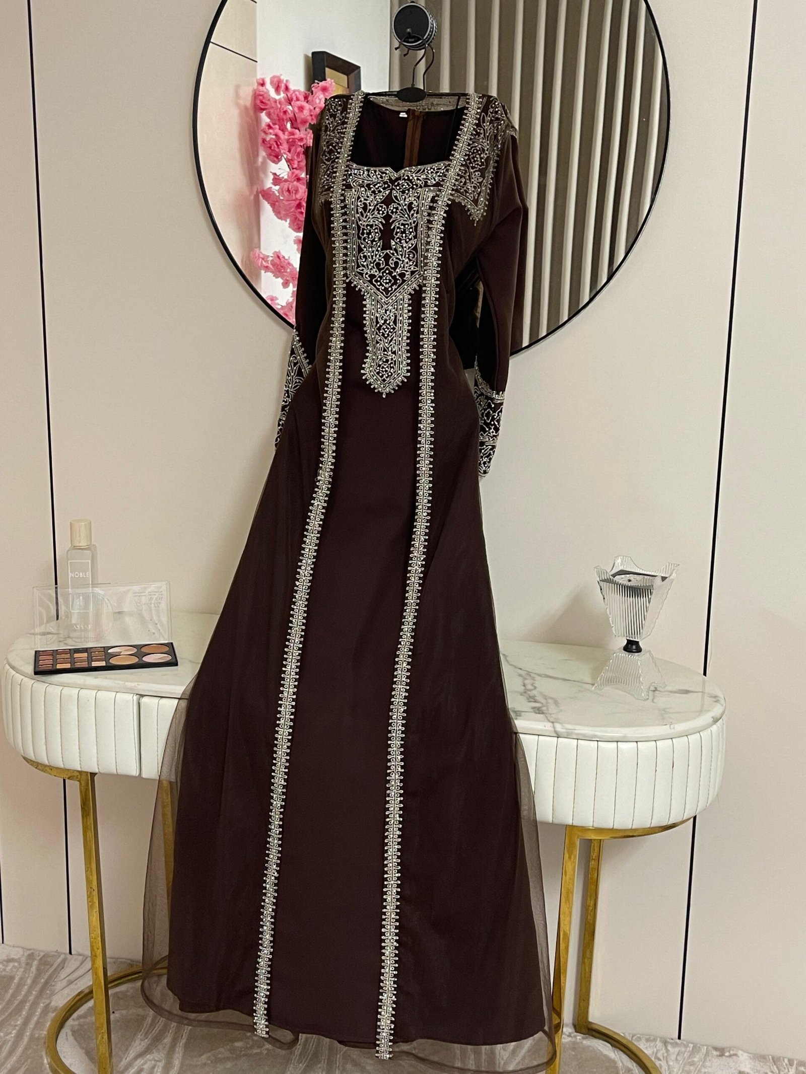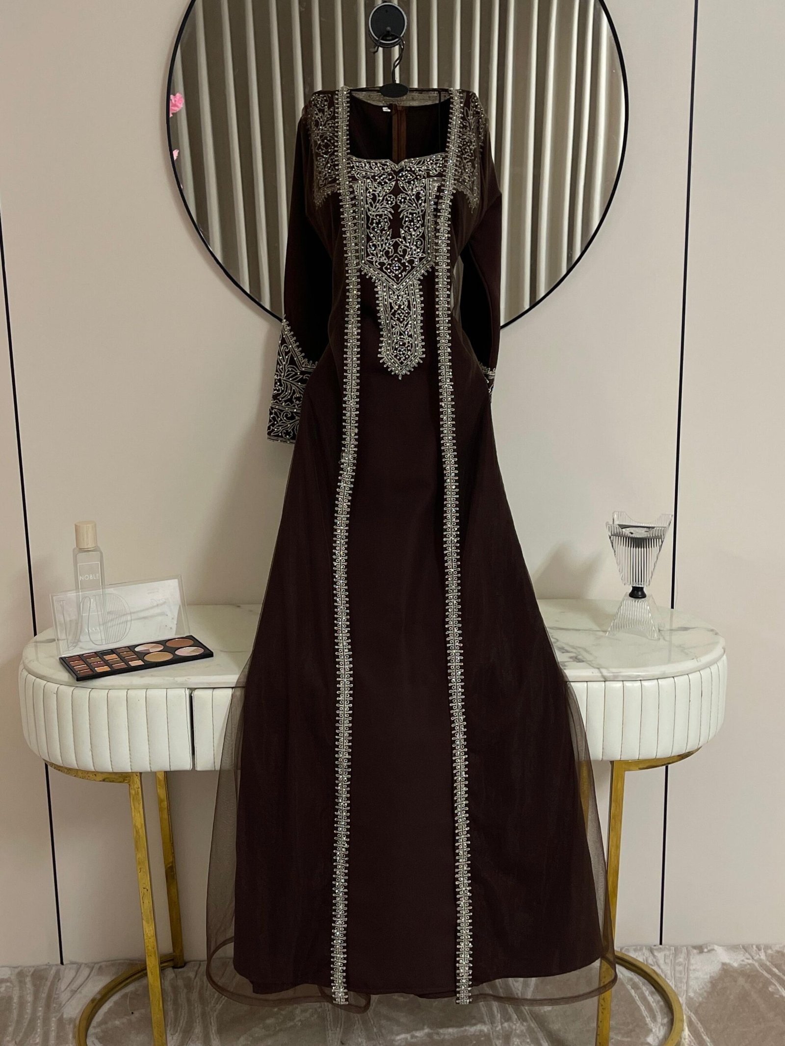 - التصميم: طويل وماكسي مع تنورة متدفقة وأكمام أنيقة